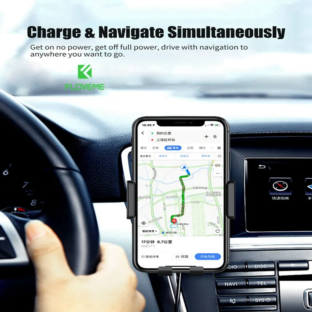 .Images of FLOVEME Car Qi Wireless Charger For Samsung S10 S9 Automatic Clamping Fast Wireless Car Charger For iPhone X Xs Max Mount Stand
